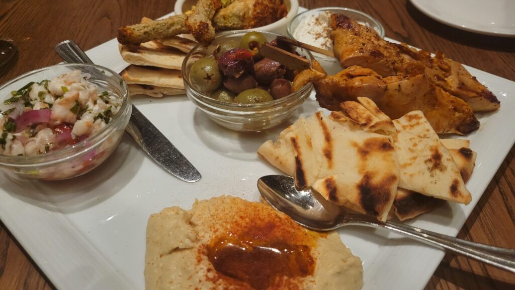 We went to a Greensboro Restuarant and ate like Royalty. This Mezze Platter was great (I don’t think Leroy enjoyed
