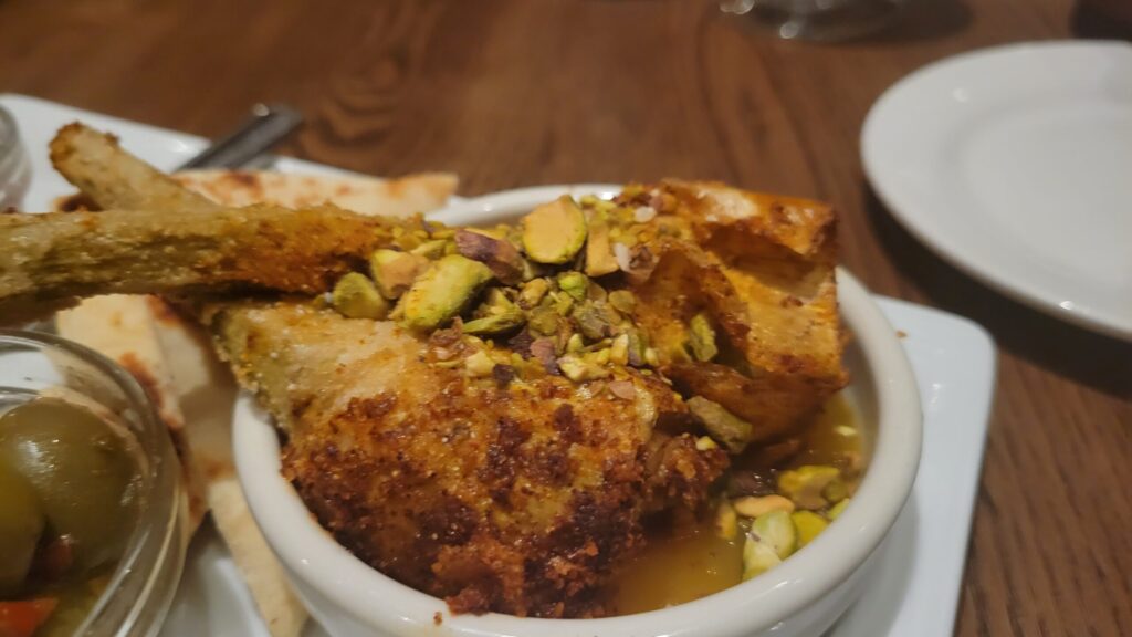 We went to a Greensboro Restuarant and ate like Royalty. This Mezze Platter was great (I don’t think Leroy enjoyed it as much as I did. These Artichoke “legs” were so creative and delicious. It had something for everyone, My favorite appetizer platter of all time.